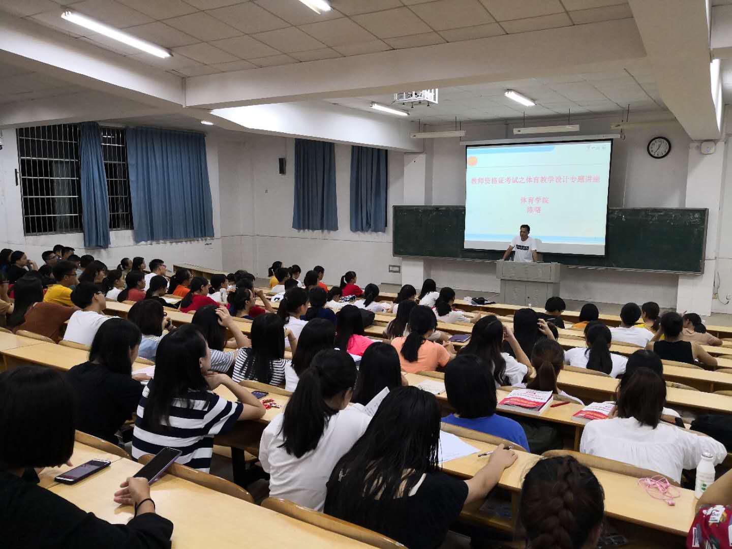 2018年9月13日晚上19:00,亚洲无码人妻陈曙教授在东方红校区玉衡楼(北)101为我院16级体育教育专业学生作了题为“教师资格证考试之体育教学设计”的精彩讲座。