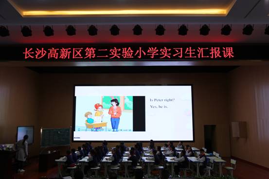 紧接着领导和老师们离开了体育馆,走进了学校多媒体教室,观摩了外语学院实习生苏彦榕的实习汇报课《Unit9 It's one hundred》,苏老师地道流利的英语口语,以及丰富的针对小学生身心发展特点的教学方法让听课老师们赞不绝口。