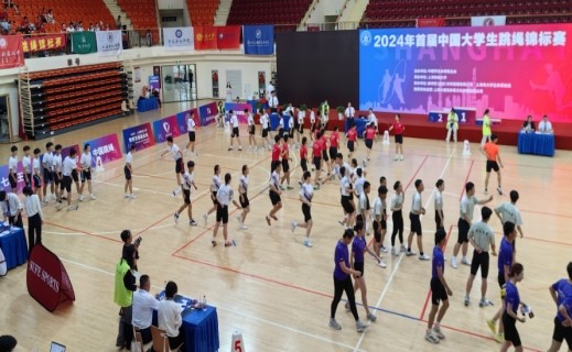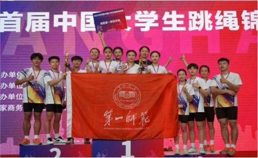 2024年5月23日至27日,由教育部中国学生体育联合会主办的首届中国大学生跳绳锦标赛在上海财经大学举行。我校学生花样跳绳队12 名同学在罗祥云、刘丽老师的带领下,与来自上海财经大学、上海体育大学、西南大学等全国各地58所高校近600余名运动员同台竞技。经过激烈的角逐,我校陈嘉莹、符子花、袁婷霞、石晴等10名同学组成的团队获得“1分钟10人长绳集体跳”项目金牌,杨天、吴嘉怡、刘乐、肖勇鹏等10名同学组成的团队获得“3分钟10人长绳8字跳”项目金牌。我校学生运动员在赛场上表现出来的精湛技艺、拼搏精神和体育风尚得到了与会各界的广泛认可和高度评价。