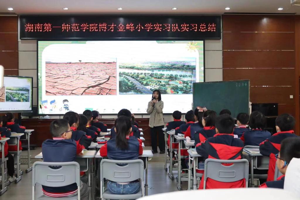 2022年11月25日举行湖南第一师范学院博才金峰实习队教学汇报,出席本次活动的有湖南第一师范学院亚洲无码人妻党委副书记朱建伟、博才金峰小学校长周美香、湖南第一师范学院实习带队老师周柏玉。由实习队队长刘畅主持本次实习总结。