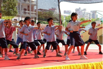 随后,胡穗校长一行饶有兴致地观看了实践团队的成果汇报展演。汇演以“传承伟人精神、践行教育担当”为主题,在实践团大学生的带领下,当地小学生以暑期夏令营临时班级为单位依次登台,武术、花样跳绳、篮球、健美操、跆拳道……,孩子们精神抖擞、意气风发,精彩纷呈的体育术科团体操赢得了观众阵阵掌声!实践团喻伊杰、李彬2位同学还带来了“恰同学少年”红色故事情景剧表演,在伟大的革命先驱蔡和森同志的家乡,向一师校友——伟人毛泽东、蔡和森以及他们在第一师范求学时相识相知、并肩革命和战斗的光辉历程致敬!