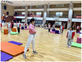 实习生刘洁围绕去果园摘水果为主线,以新颖有趣的情景带领二年级的同学们上了一堂《原地侧向投掷沙包》,尽管天气阴沉,冷风习习,也抵挡不住同学们上课的热情满满;实习生张国庄给四年级的同学们上了一堂《脚内侧传地滚球》,老师与同学们活力十足,大胆的课堂让学生更加自由地练习,真正做到了在学中玩,在玩中学;实习生何莎莎的《侧手翻》,教态自然大方,语言简洁清晰,与学生互动自然恰当,课件精美得当,充分展示了体院实习生的专业水平和个人风采。