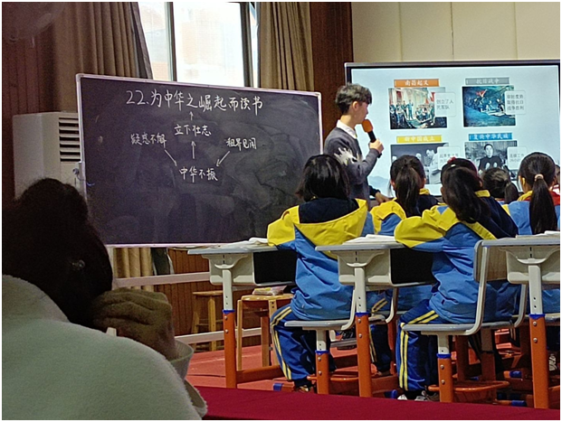 周张武老师在《为中华之崛起而读书》的教学过程中,抓住关键词、句、段进行了精读、精讲。注重以读为本,充分理解语言文字,引导学生在读中感悟,结合大量形象、直观的多媒体课件,充分发挥想象,再现租界地的种种画面,从而为中华不振感到痛心,为学生发出“为中华之崛起而读书”的感叹奠定了坚实的感情基础。
