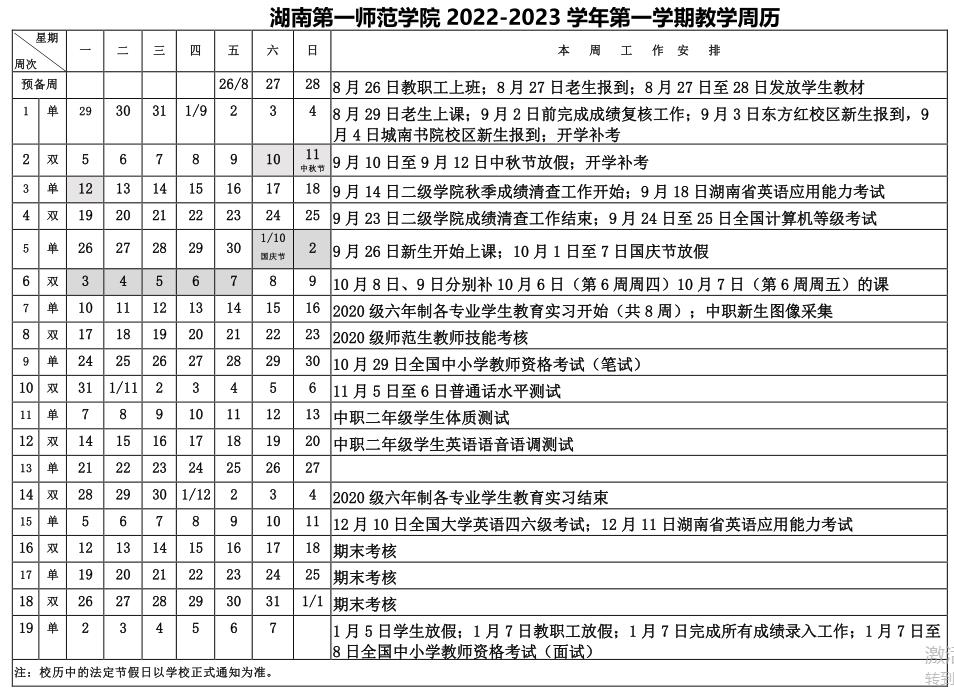 湖南第一师范学院2022-2023学年第一学期教学周历.pdf
