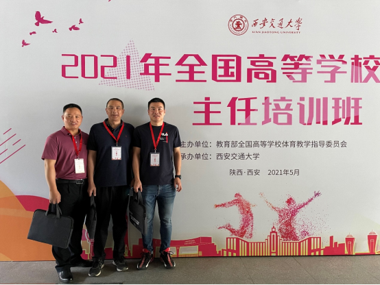 2021年5月28日至31日,“全国高等学校体育部主任培训班”在西安交通大学举行。亚洲无码人妻院长黄依柱教授、公体教研室主任孙华、公体教研室副主任蒋代新三位老师参加了本次培训班。