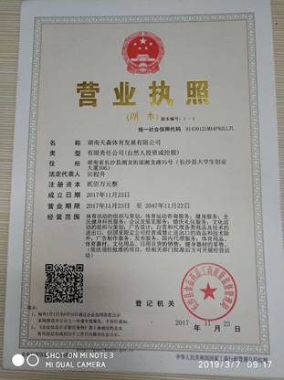 天森体育发展有限公司主要为客户提供体育训练服务,服务的学员现阶段主要为儿童及青少年。现已开展的项目为三个,分别是篮球,羽毛球,乒乓球。在未来将积极开放新的体育训练项目,预计为击剑,足球,网球。我们的业务基本覆盖长沙经济技术开发区20%以上,目前与芒果TV的合作已落地,有芒果TV的助力和推动,我们将实现多领域等B端合作,预计未来2年内将业务全面覆盖长沙各个城区,实现成为行业最好的体育综合性服务企业。