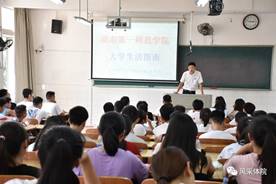 9月8日上午,丁小芬老师针对我院开设的课程以及在大学四年中应修满的学分做了详细的介绍。下午,唐智鹏老师以“法制安全你我他,安全校园靠大家”为主题,简述了大学校园安全四防———防火,防盗,防骗,防意外事故。9月9日上午,朱慕雅老师以“坚定理想信念,做新时代追梦人”为主题,阐明了新时代我们应立鸿鹄志,做奋斗者,做追梦者,做圆梦人。中午,周莎老师针对我校学籍管理方面对同学们进行了讲解。下午,纪鑫老师给同学们讲解了大学生活中的学习方向,奋斗目标。