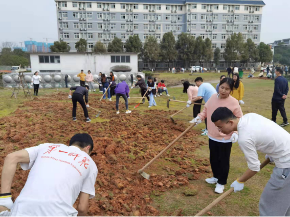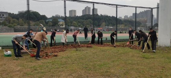 上午9点,我校田径场西北角绿化带草地上人声鼎沸、热闹非凡。在校长童小娇清脆响亮地宣布“湖南第一师范学院2022年义务植树节活动正式启动”之后,迅速分赴各自责任区域,开展植树活动。