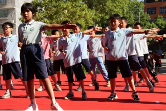 随后,胡穗校长一行饶有兴致地观看了实践团队的成果汇报展演。汇演以“传承伟人精神、践行教育担当”为主题,在实践团大学生的带领下,当地小学生以暑期夏令营临时班级为单位依次登台,武术、花样跳绳、篮球、健美操、跆拳道……,孩子们精神抖擞、意气风发,精彩纷呈的体育术科团体操赢得了观众阵阵掌声!实践团喻伊杰、李彬2位同学还带来了“恰同学少年”红色故事情景剧表演,在伟大的革命先驱蔡和森同志的家乡,向一师校友——伟人毛泽东、蔡和森以及他们在第一师范求学时相识相知、并肩革命和战斗的光辉历程致敬!