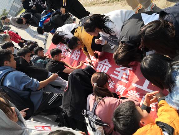 最后,在主持人的组织下,大家在本次演练的主题“关注消防,生命至上”横幅上签名留念。至此,本次消防演练圆满结束。