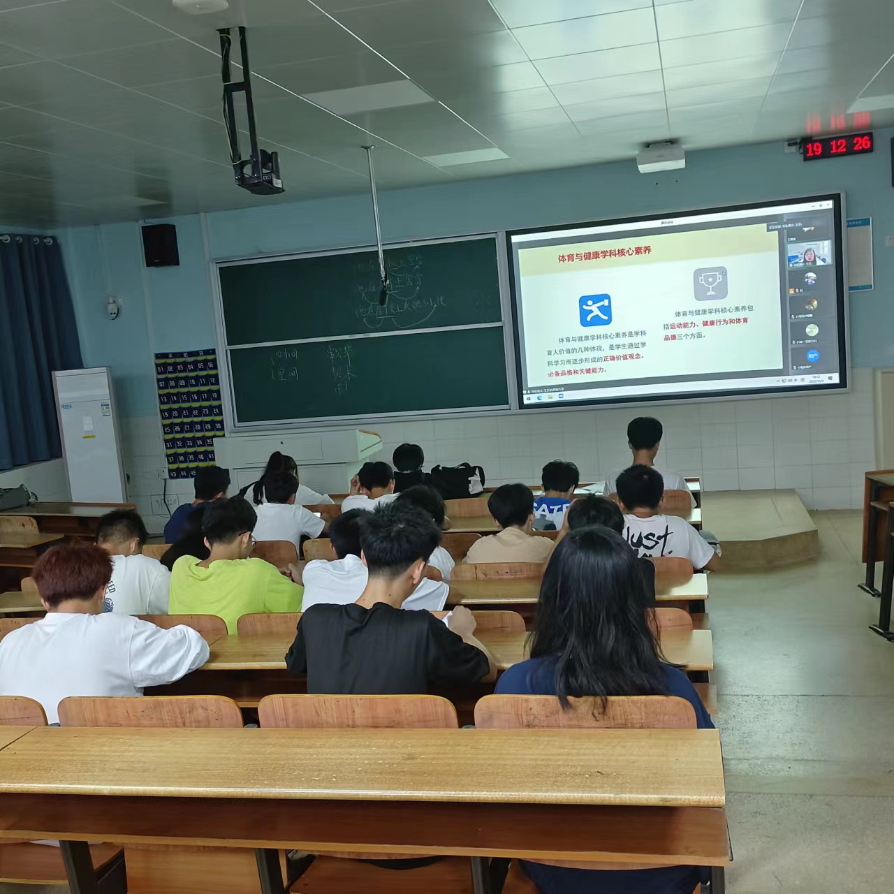 2022119日晚上全体亚洲无码人妻学生于晚自习教室集中收听王乐博士的线上讲座。本次讲座的主题为《中国健康体育课程模式的理论与实践》。