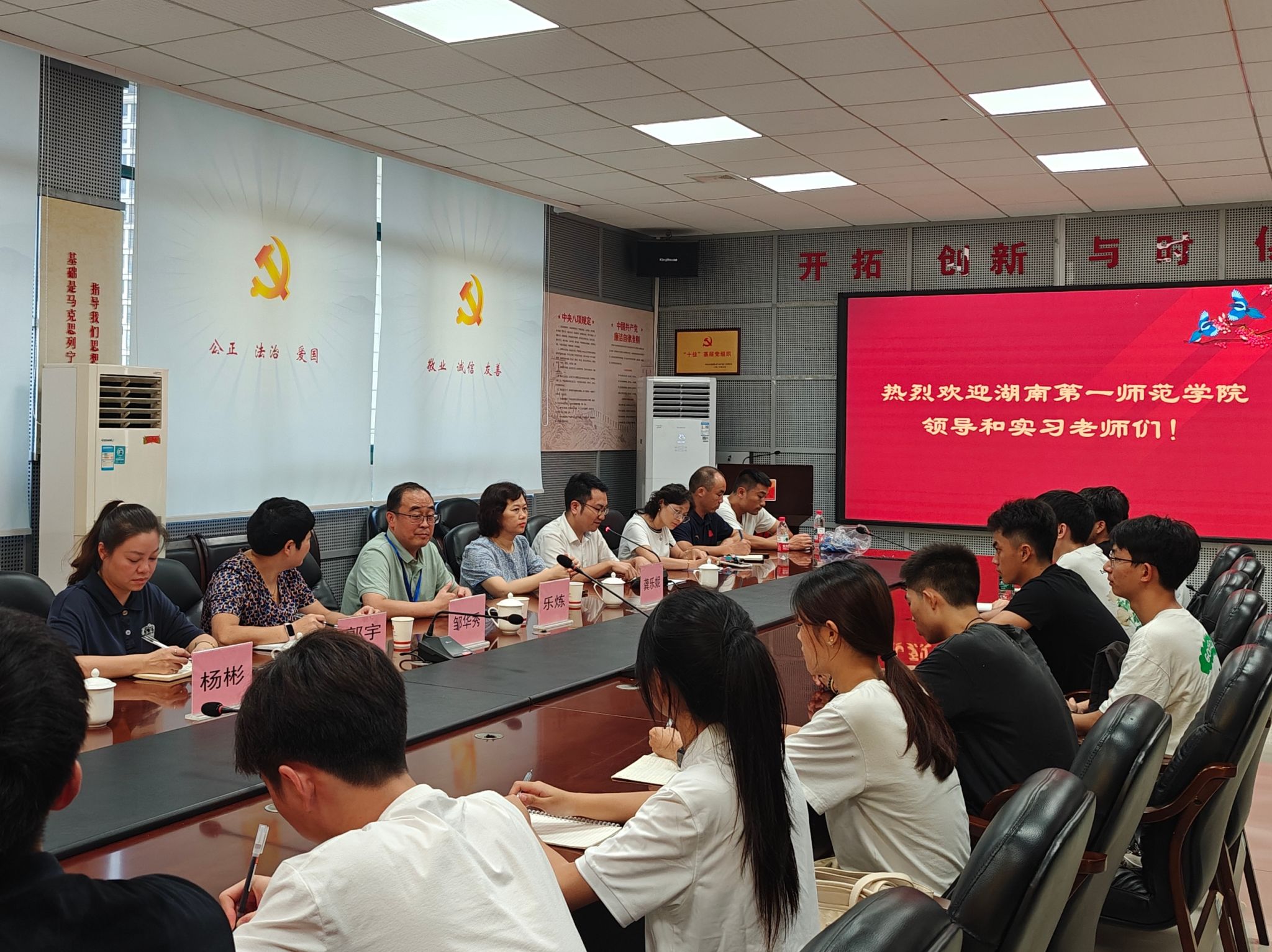 见面会上,明德麓谷学校对湖南第一师范学院师生的到访表示热烈欢迎。校长乐炼围绕学校办学特色、发展概况与教育理念作分享,并介绍实习生将由学校体育教师以“一对二”的“导师制”模式,为每位实习生提供精准、专属的教学指导。明德麓谷学校教务处主任朱智慧就实习期间的具体工作安排、教学规范要求及安全注意事项作详细说明,为实习生厘清实践方向。