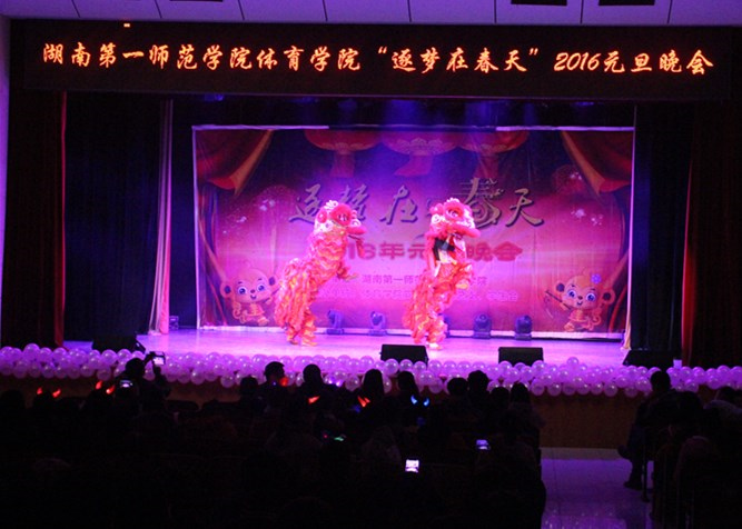 晚会在欢快热闹的舞狮表演中拉开了序幕。随后黄依柱院长致辞,对我院上一年的工作进行了总结,对即将开始的2016年进行了展望,对全体同学们在新的一年提出了新的希望。整场晚会流行与古典兼收,温情与火热并举,形式多样,精彩纷呈。不管是感人至深的朗诵《那些年,我们真的没有钱》《儿女情》、性感火爆的爵士舞《战争与和平》、令人回味无穷的古典舞《卷珠帘》,还是幽默诙谐、爆笑连连的小品《非诚勿扰》《打劫》,每个节目的倾情演绎,精彩呈现,都充分彰显了我院学生昂扬向上的青春风采。晚会最后在《中华大舞台》的歌声中圆满落幕。