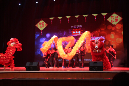 充满浓厚节日气息的龙狮表演拉开了晚会的帷幕。黄依柱院长发表了热情洋溢的致辞,他为全院师生带来了新年的美好祝福,对全体师生在2014年所做的工作与努力给予了充分肯定,同时对2015年提出了新的期望。整场晚会流行与古典兼收,温情与火热并举,形式多样,精彩纷呈。歌曲联唱《SHY》、《光辉岁月》等轮番登场,或浪漫温馨,或轻快悠扬,或活泼动感,风格各异,变幻多姿;由同学们自编自导的小品《非常联播》、《扶不扶》等表演用惟妙惟肖的表演、别出心裁的服装和令人捧腹的角色反串,引得观众爆笑连连;热舞《烈焰玫瑰》、《tonight》、《trouble make》等用动感的舞步和柔美的肢体语言彰显了同学们丰富多彩的校园生活和活泼阳光的青春风采。