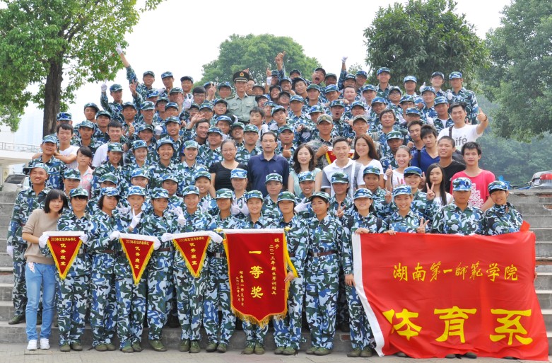 今年新生军训从9月10日开始,体育系2013级102名新生全部参加了为期十二天严格的军事化训练。同学们在国防科技大学教官的严格要求及学生班导的协助引领下,顶烈日斗酷暑,克服了各种困难,认真参训。期间,系部领导多次对新生军训工作提出指导意见,分管学生工作的副书记、辅导员每天到新生军训现场为新生加油鼓劲。最终,我系新生再创佳绩,又一次用自己的实际行动诠释了“顽强拼搏,永争第一”的体育精神。