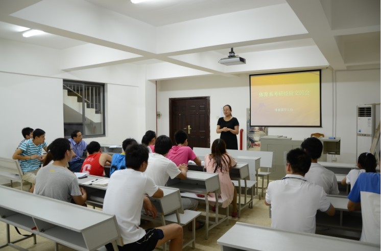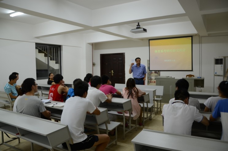 2013年5月28日由体育系学工办主办的考研交流会在体育馆多媒体教室举行。本次交流会体育系系主任黄依柱、党总支副书记祝娅、学工办主任纪鑫、学生辅导员唐智鹏出席了会议,并诚邀了今年以优异的成绩成功考研的2009级黄先瑜同学。会议由祝娅副书记主持。