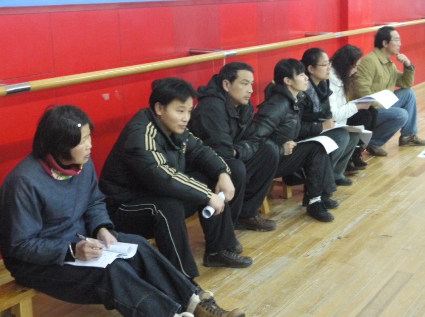 体育系评委会专家认真听课、评课,最后推选专业组姜辉军、罗捷老师,大学体育组汪博、肖琴老师代表我系参加学院青年教师课堂教学竞赛。