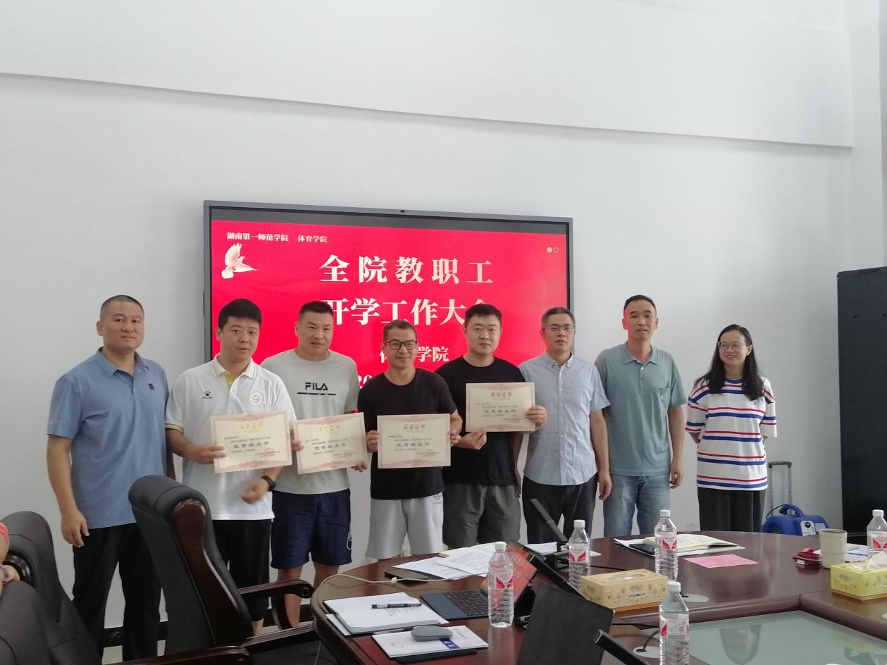 院长助理、体育教育系主任丁小芬总结报告了暑期专任教师尤其是新进教师的教学准备磨课情况,分享了暑期中青年骨干教师培训的体会与收获,并就2024年下半年教学竞赛、课程建设、教学改革等工作做了初步安排。副院长罗婉红总结通报了2024年我院教师科研工作取得的成绩,对在教育部人文社科项目、省级科研项目获得立项的老师表示祝贺,鼓励老师们及时关注科研信息,再接再厉积极申报各类项目,期待下半年有更多成果突破。罗婉红同时对本年度学生专业实习工作做了部署安排,要求所有实习带队老师积极对接协调,高质量完成实习实践教学任务。副书记朱建伟通报了我院2024届毕业生就业情况,肯定了相关老师为毕业生就业帮扶所做的努力,我院毕业生初次就业率再次排名全校第一。朱建伟还宣布了本年度优秀班主任名单并为获奖教师颁奖,详细部署了2024年下半年的学生教育管理工作,要求学工办牵头协同全体教师继续狠抓学风建设,尤其要做好2025届毕业生的考研指导服务等工作。
