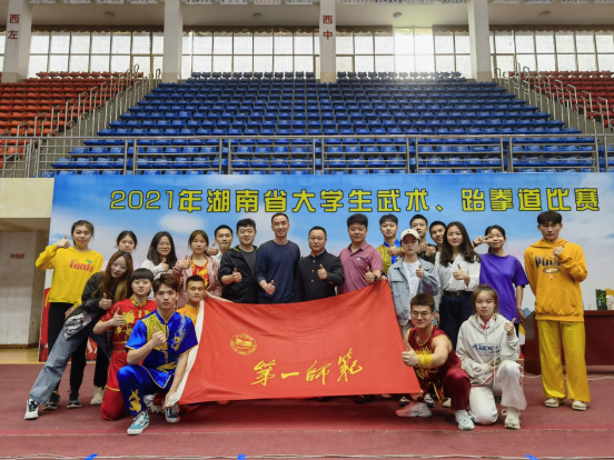 2021年5月16至20日由湖南省教育厅举办的湖南省大学生武术锦标赛在株洲市湖南工业大学隆重举行,来自全省38所院校派出了代表队参加此次比赛,我校武术队在领队朱建伟,教练员崔建彪、蒋代新的带领下,派出17名运动员参赛,专业组取得了两金五银三铜的优异成绩,团体总分位列第四。
