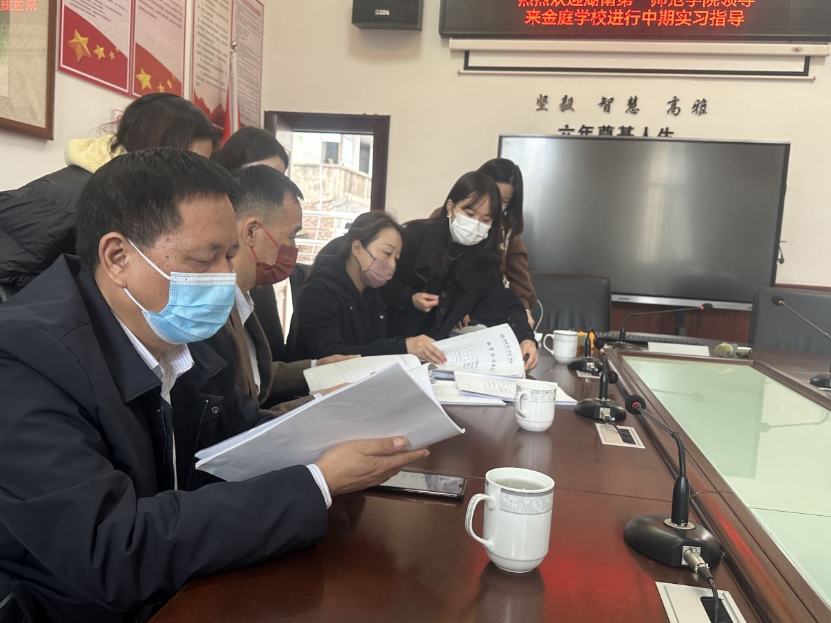 在查阅实习生们的实习手册、教案本等材料后,实习副队长付丹总结了前半学期的实习工作,各校实习生代表也纷纷从生活、教学、校务工作等方面汇报了本次实习工作的开展情况。随即朱书记对实习学校给予实习学生在教育教学方面的指导以及生活上的关心表示衷心的感谢,要求每位实习学生自觉遵守实习学校的各项规章制度,包括校园疫情防控工作的要求,虚心接受实习学校教师的管理和指导。金庭学校刘和平校长对我院实习生的表现给予肯定,认为实习生踏实勤奋、教育教学方法有创意,并对实习生寄予了厚望,希望能够有一批批优秀年轻教师投入到教育事业中。教育局谷局长也畅谈了对教育工作的想法,同时希望能有机会前往湖南第一师范学院了解对师范生的培养,共同助力年轻教师的成长。
