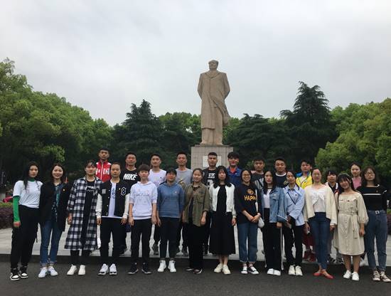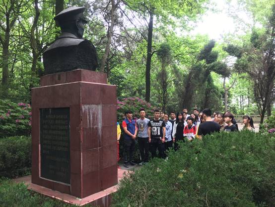 主题党日活动于9时30分正式开始,东方红广场人流如织,在毛主席铜像前,追溯红色记忆,重温建党历史。纪鑫老师勉励全体学生党员乘新时代春风,胸怀祖国,积极作为。随后,全体成员步行至岳麓山萧劲光铜像纪念园,瞻仰萧劲光大将铜像,作为人民海军的重要创建者,值此中国海军成立70周年之际,追忆萧劲光大将革命的一生,寄托对革命先辈的哀思。
