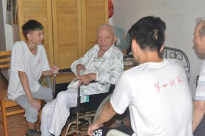 接着,党员师生代表深入老兵们的公寓,了解他们的生活条件和生活状况,并像亲人一样与他们聊家常、话战事。老兵们兴奋地把他们当年的勋章与奖章拿给大家看,感动地说:大家没有忘记他们,没有忘记历史!