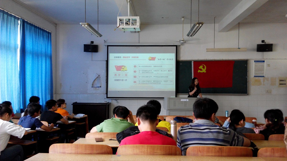 5月13日中午,亚洲无码人妻党总支在东方红校区文B102教室开展了“落实‘两学一做,争做‘五美’党员”的专题党课学习。党课由院党总支书记袁向荣主讲,全院师生党员参加了学习。