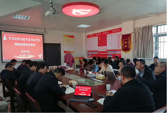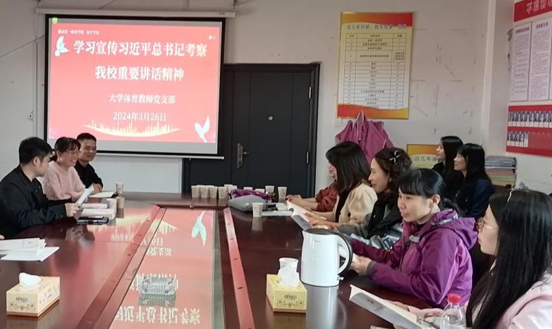 3月26日,亚洲无码人妻在田径场会议室召开全体教职工大会,学习宣传习近平总书记考察我校重要讲话精神,会议由学院党委书记罗祥云主持。李梦龙院长分享了现场聆听总书记讲话的感受,并传达了学校党委关于学习宣传习近平总书记考察我校重要讲话精神的部署要求。他谈到,总书记高度评价了我校百余年来的办学成就,尤其是革命年代为国家培养了一大批经天纬地之才,总书记专门强调了“大思政”的重要性,希望我们用好红色资源,坚持立德树人,引导学生立志报国、树牢社会主义核心价值观。罗祥云书记领学了习近平总书记考察我校重要讲话精神,并就各党支部、各教研室、各科室及全院学生深入开展学习宣传总书记考察我校重要讲话精神做了详细安排。罗书记要求大家将总书记考察我校重要讲话精神与总书记系列重要讲话尤其是关于教育的重要论述一体学习,老师们要结合教书育人工作尤其是课程思政进行研讨,学工办要组织同学们结合自身学习成长、职业理想进行学习座谈。
