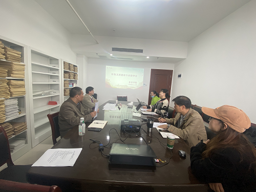 首先,李梦龙院长就我院红色文库建设的前期工作做了简要介绍,根据学校领导对我院红色文库建设的指示和有关专家的建议,我院罗婉红、朱罗敬、单舜三位老师重新提交了选题,为保证红色文库建设质量,特邀请胡春光院长来我院做专门指导。然后,胡春光院长就三位老师的新选题提出了建设性的意见,并鼓励老师们加快进度保质保量完成书稿撰写,用实际行动迎接明年学校“三庆”。